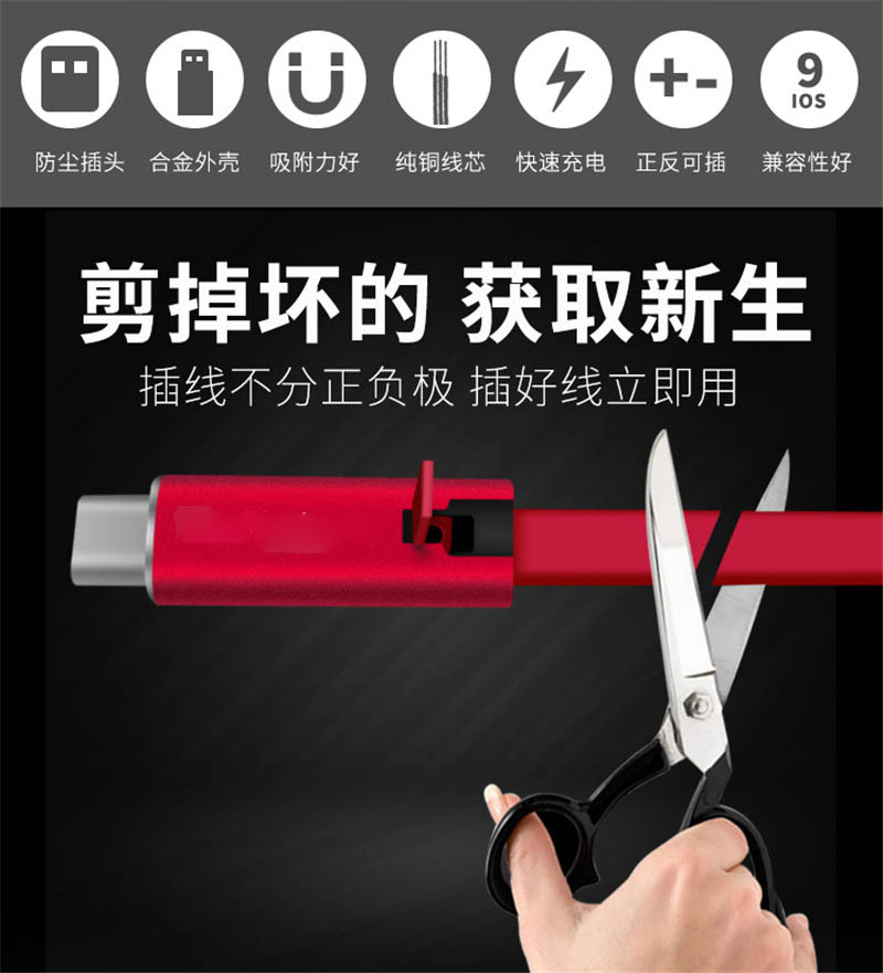 产品材质:锌合金、TPE适用机型:Lightning/Micro USB/type c颜色:全黑、黑红、银红、银黑线长:1.5m电压/电流:5V/1.5A