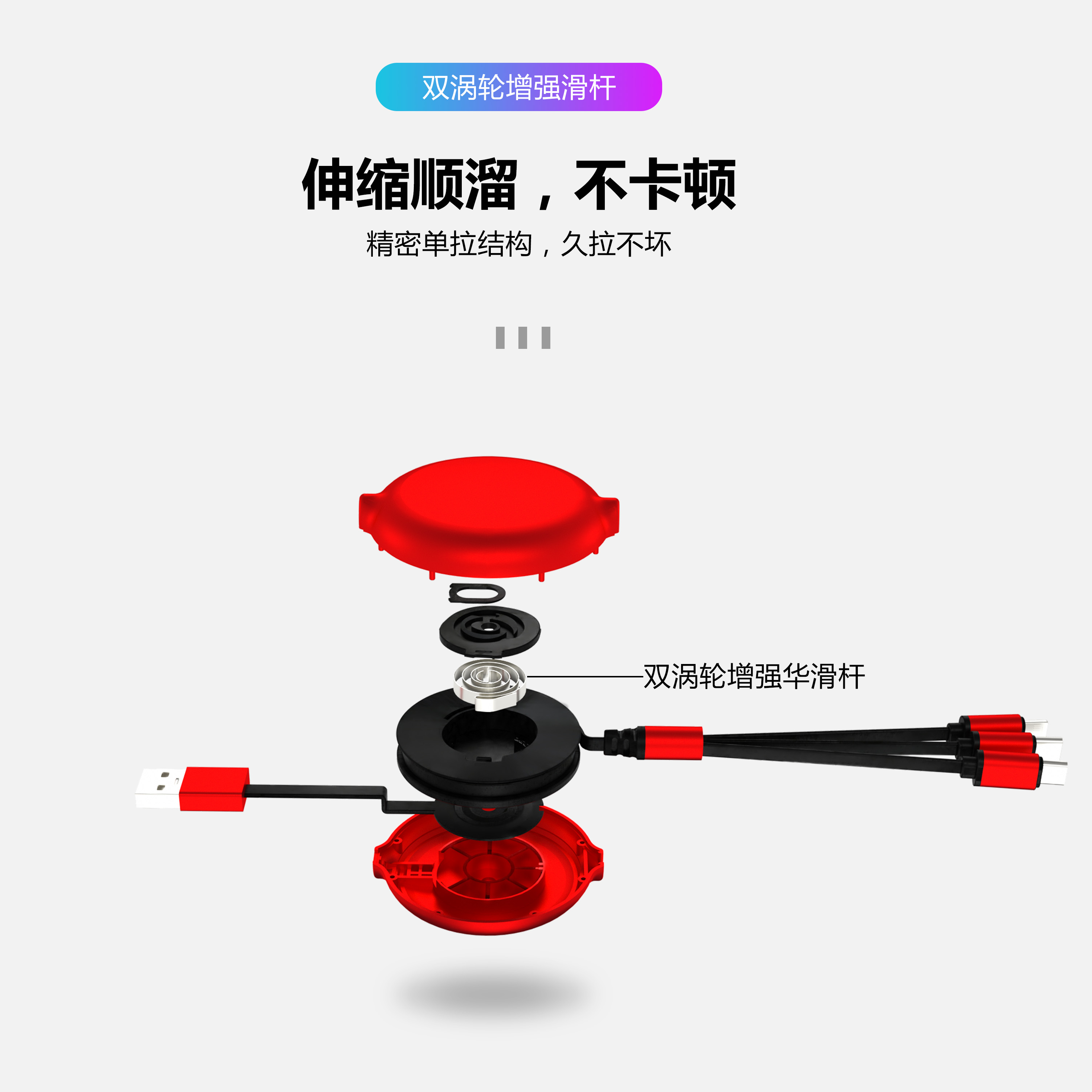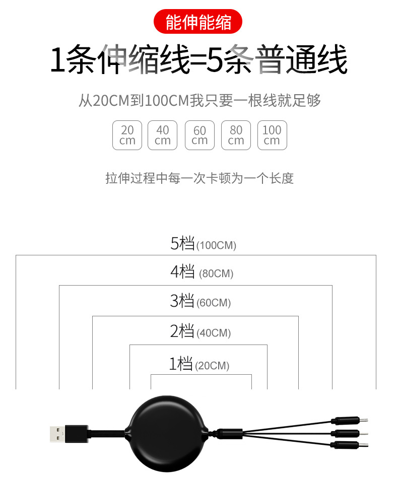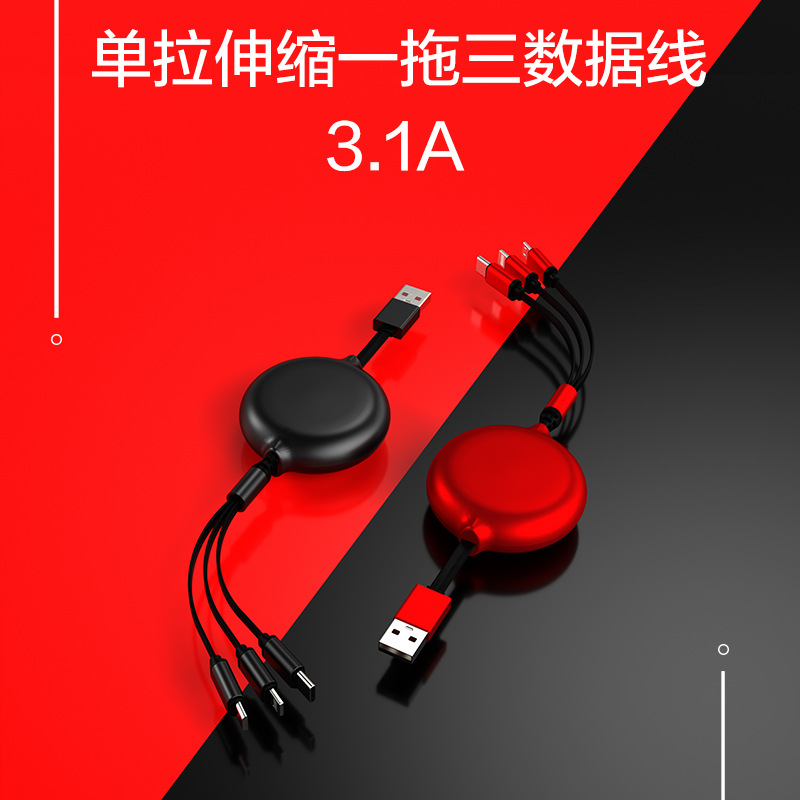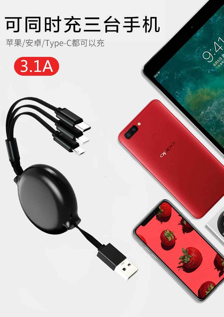 【产品名称】:单拉伸缩一拖三充电线、数据线