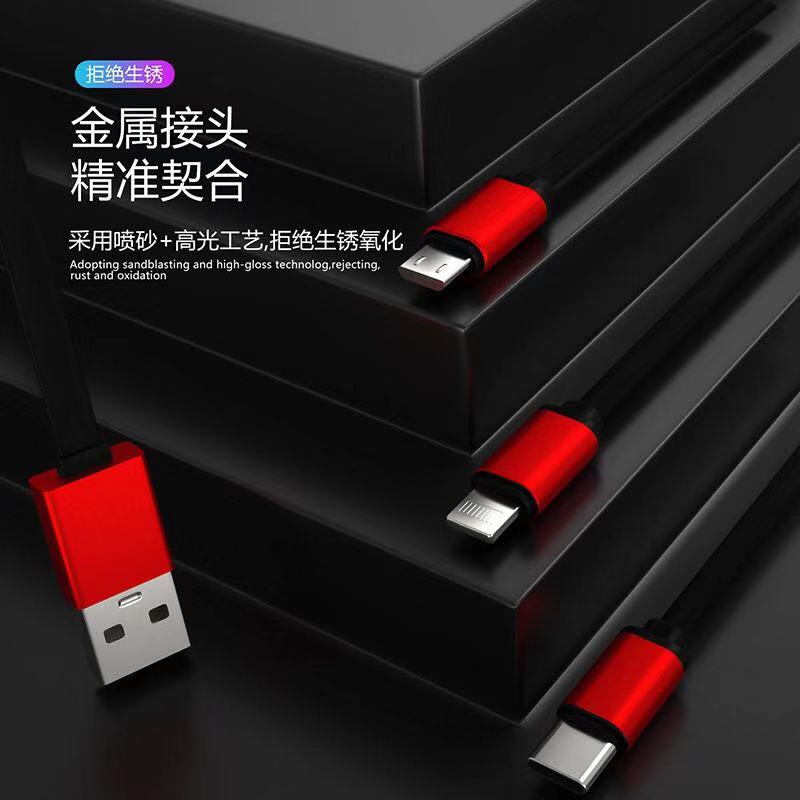 一个USB拖三个接口,通用安卓手机,TYPE-C、苹5/6/7/8/X等.....充电速度快,不打结,耐磨耐脏!
