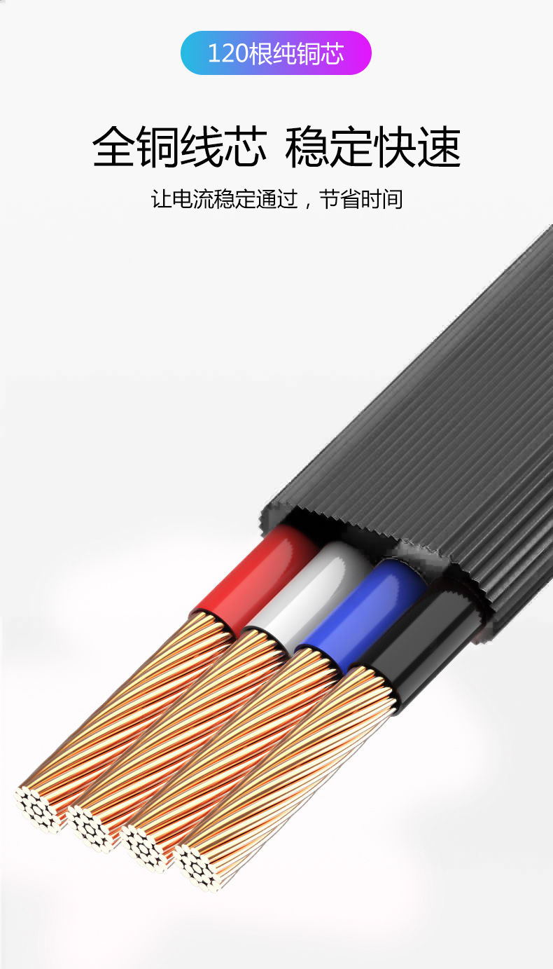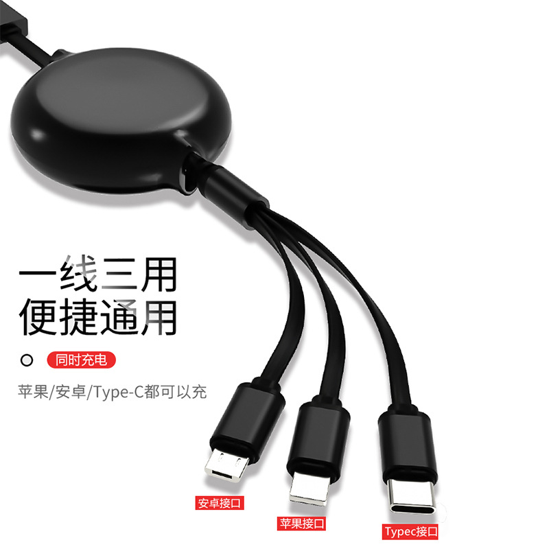 【产品亮点】:可定制LOGO,一拖三设计、智能分流,过3A电流,同时快充。