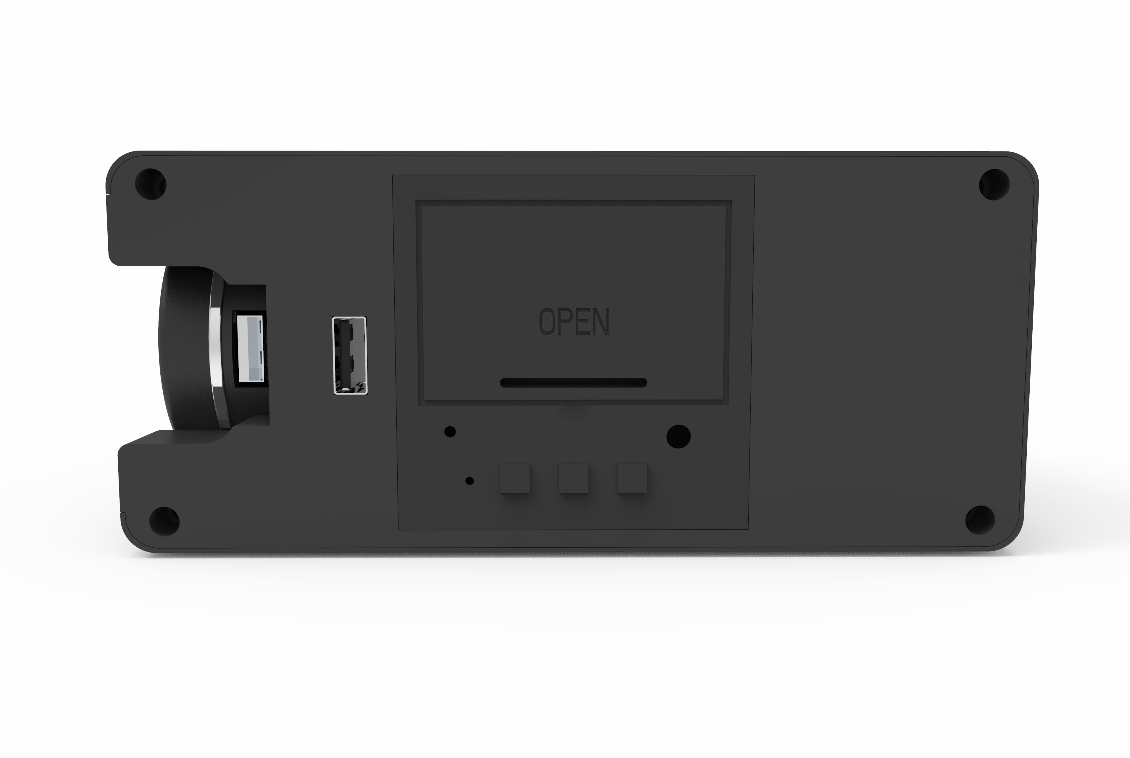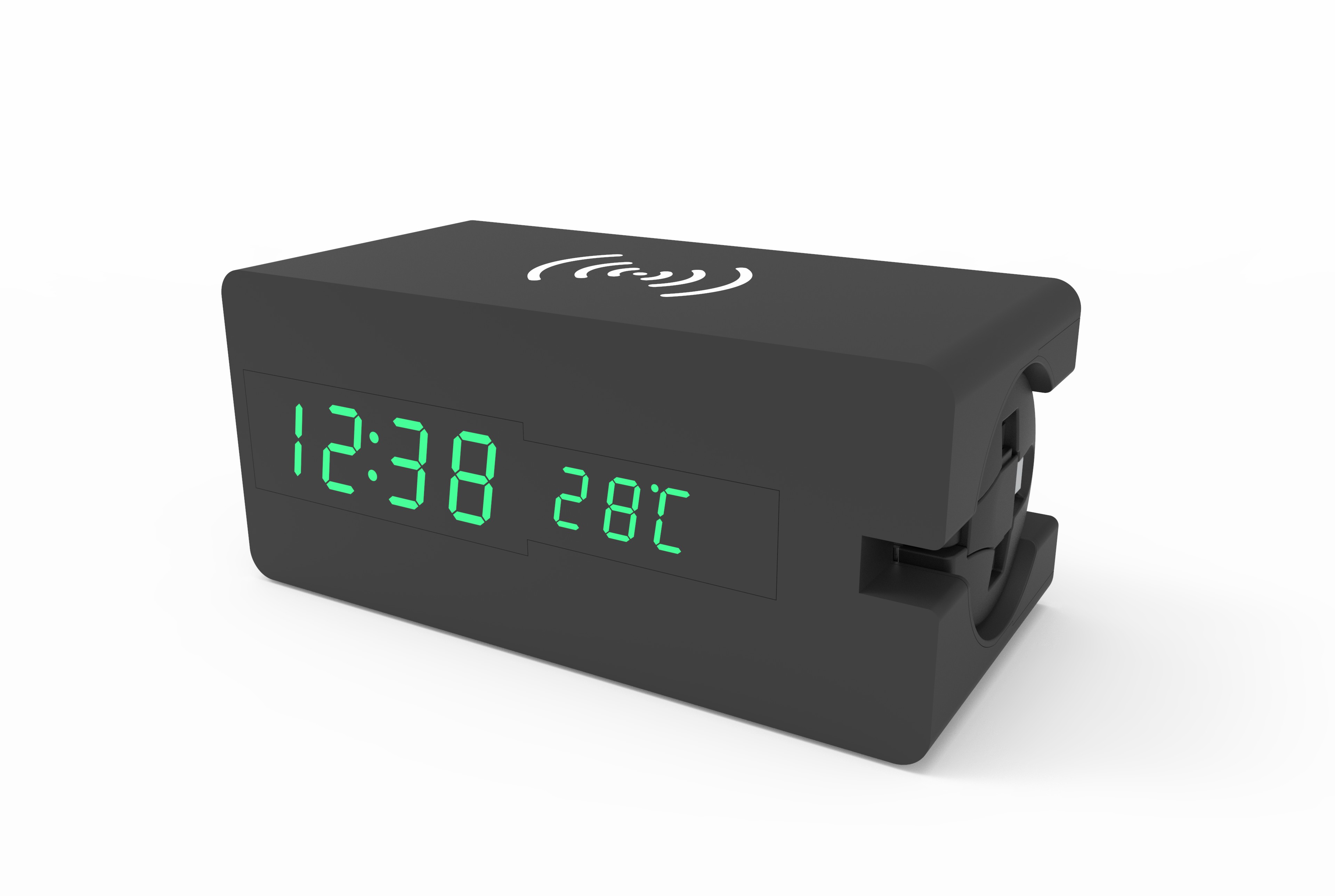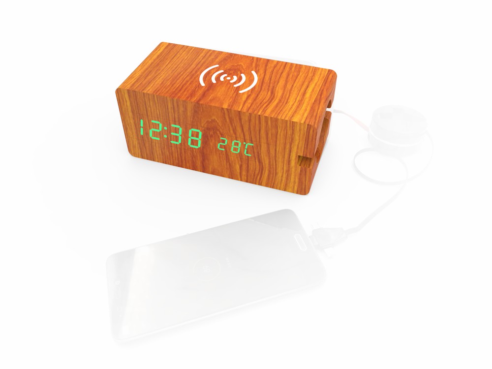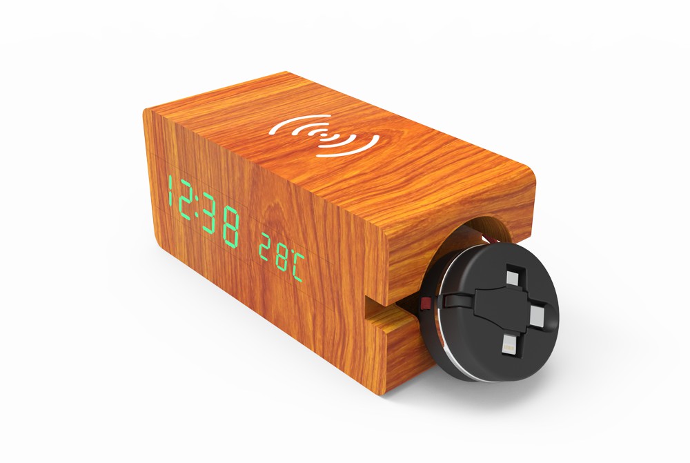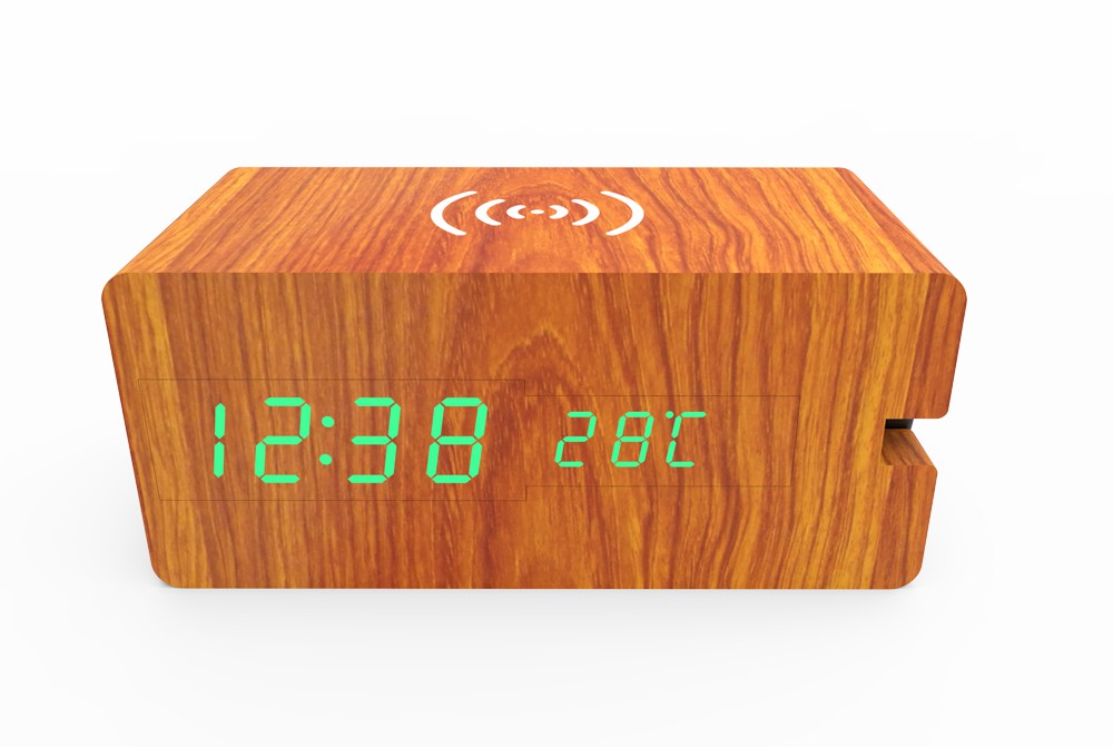 Input:DC5V/2AOutput:5V/8AFunction:Time and temperature display,Set three alarm clocks,Wireless chargeMaterial:ABSRetractable Length:800mmColor:black,wooden