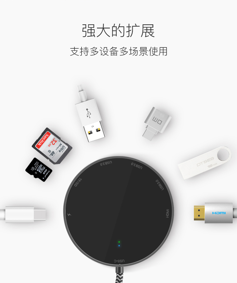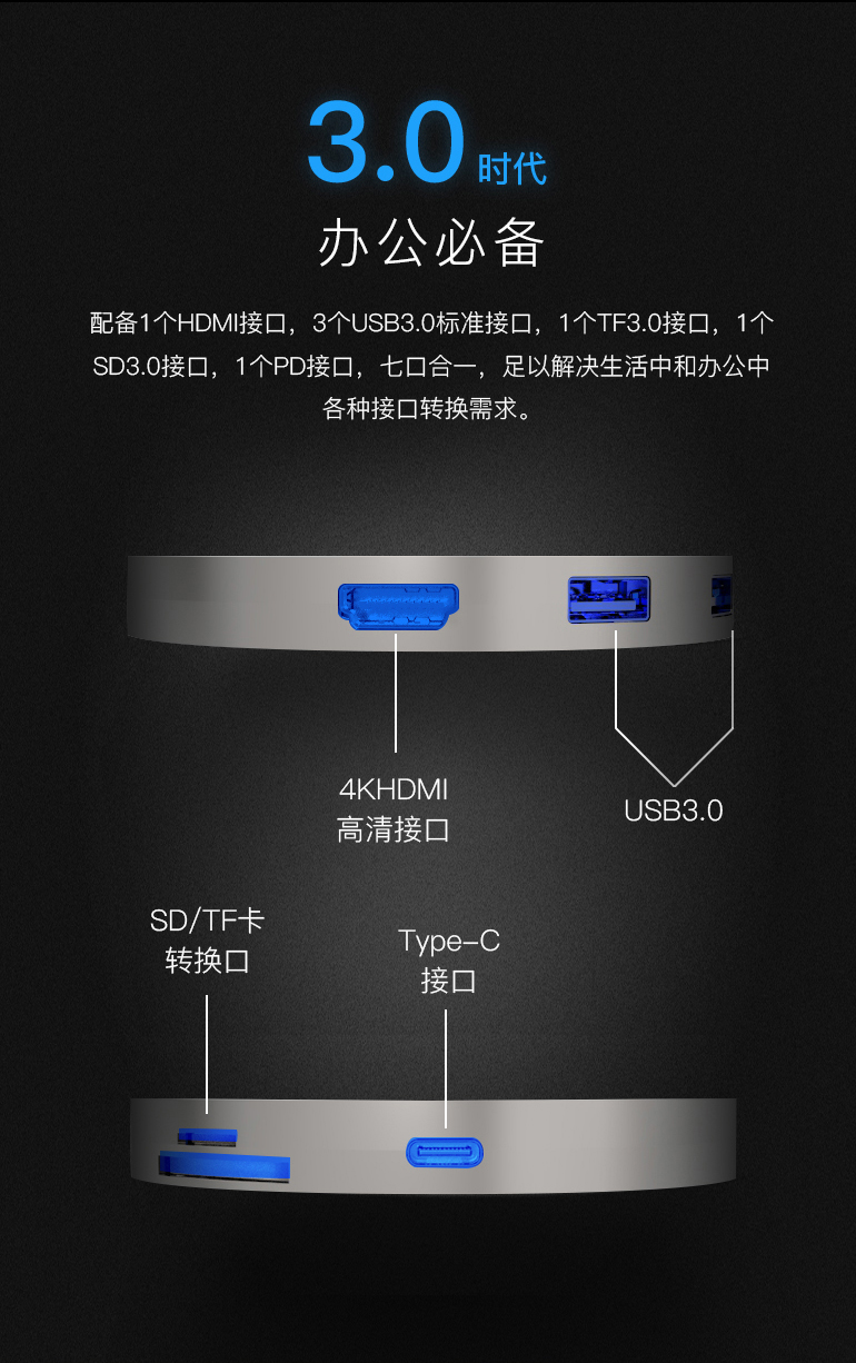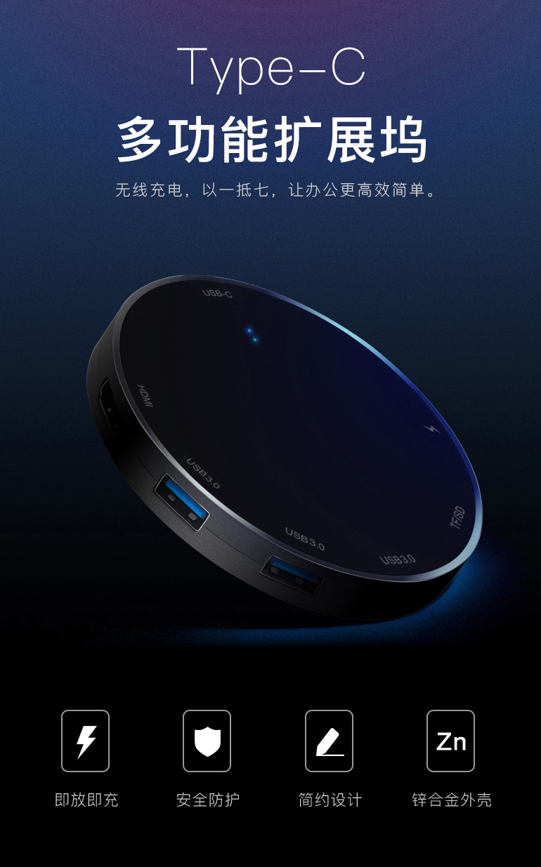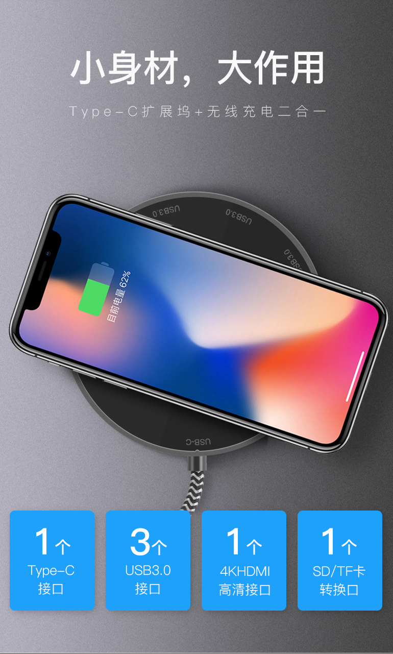 1. All in one (With all the ports needed: 3.0USB*3, SD & TF card slot, USB-C, Type-C, HDMI, wireless charger)