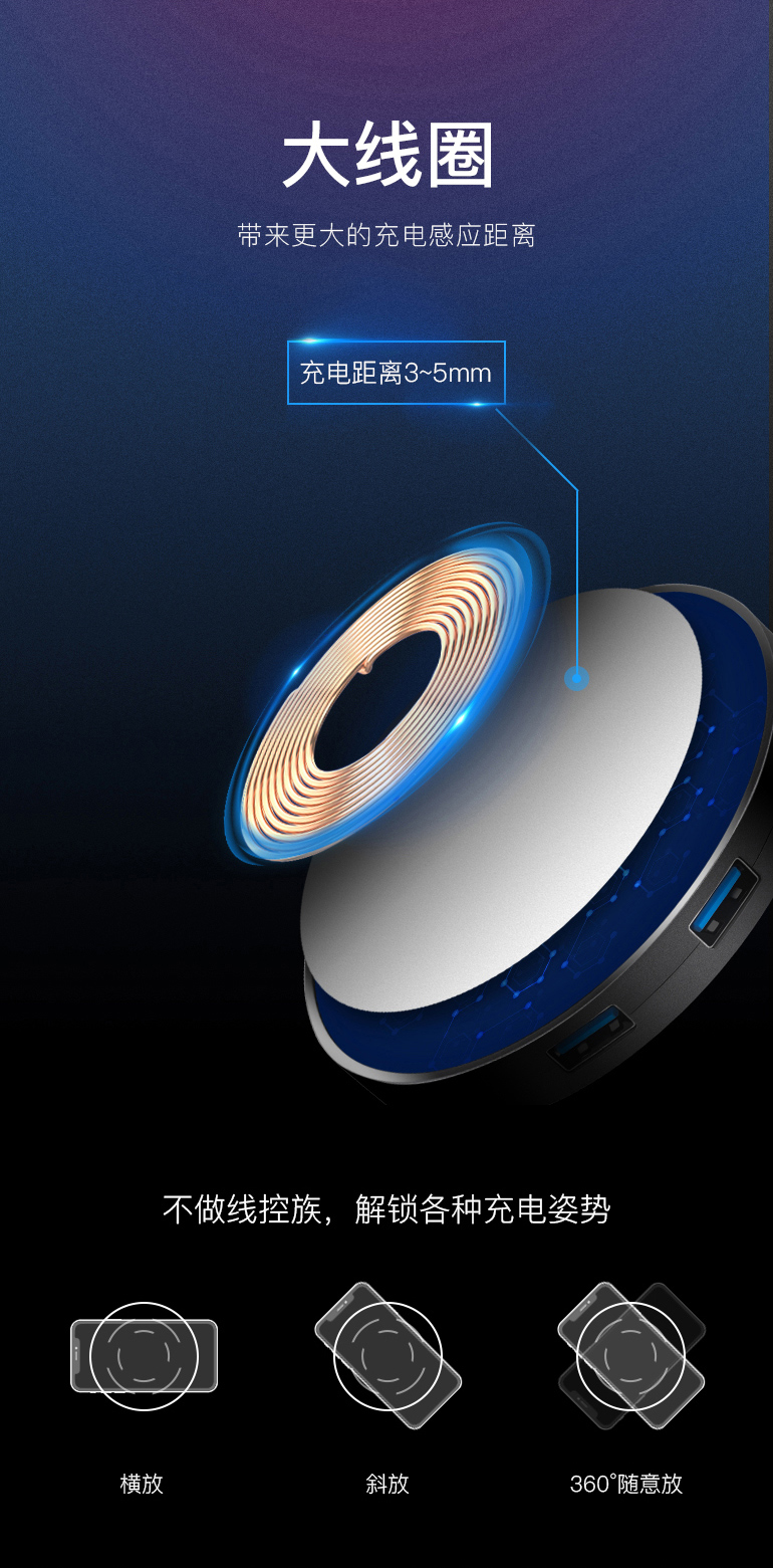 5. Wireless charger output power: 5W, 7.5W, 10W