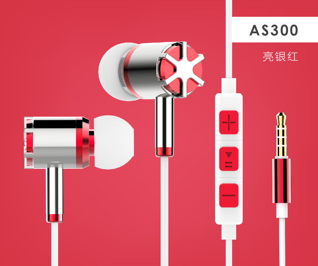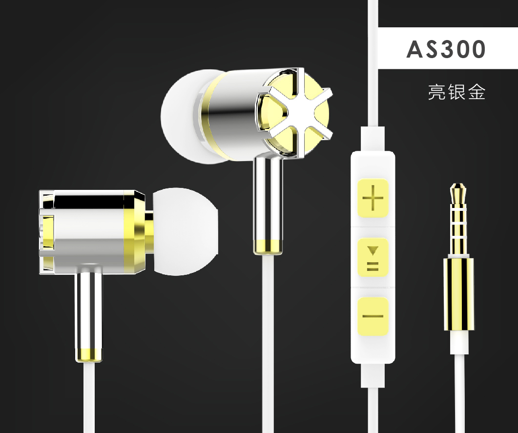 Hot sale AS300 Metal Earphone with Mic Volume Control Earphone