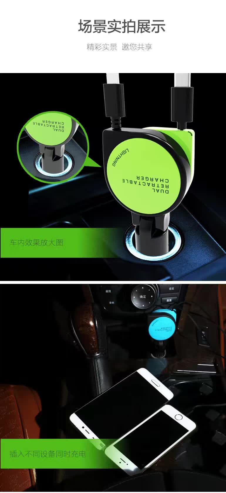 1.With double retractable built-in cable for iphone/ipod/ipad/samsung galaxy/huawei/xiaomi/LG/HTC/blackberry/meizu/sony etc.androids cell phone;